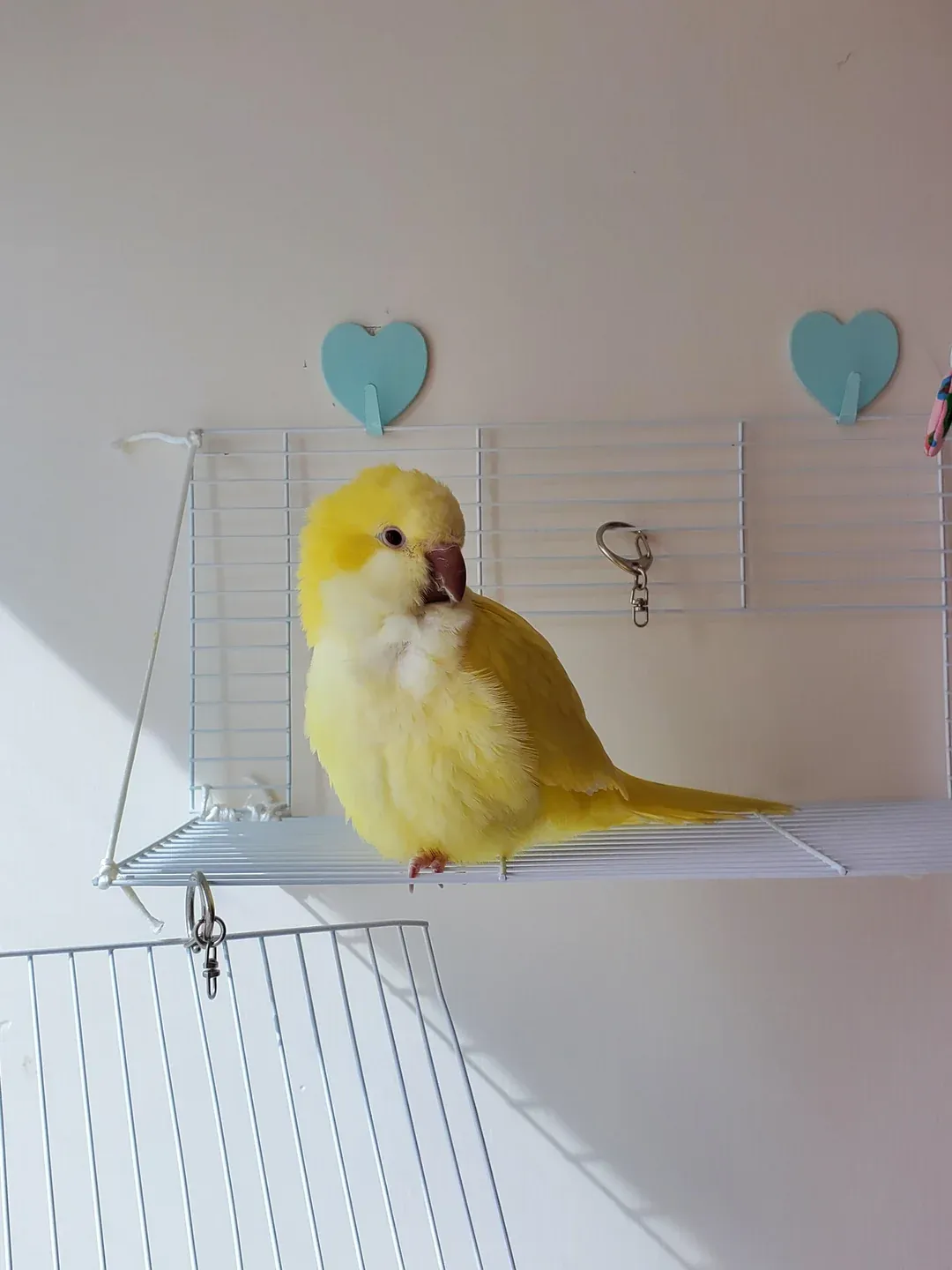 • Enrichment: Daily out-of-cage time, foraging toys, swings, and puzzles